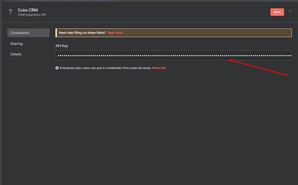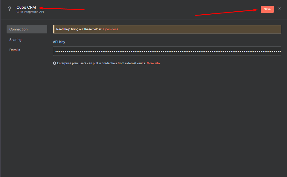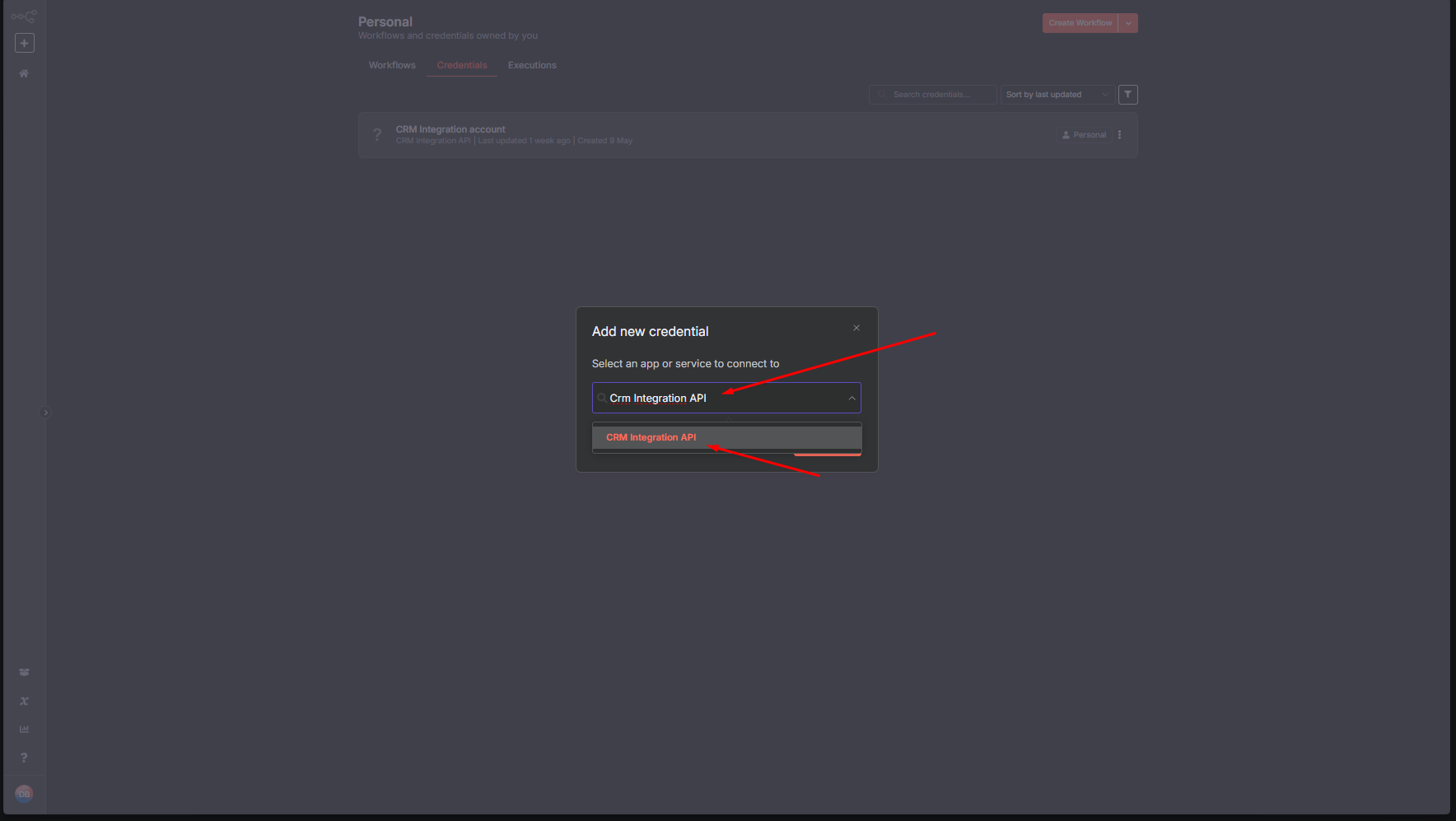 Crie uma nova credencial com o tipo CRM Integration Account.