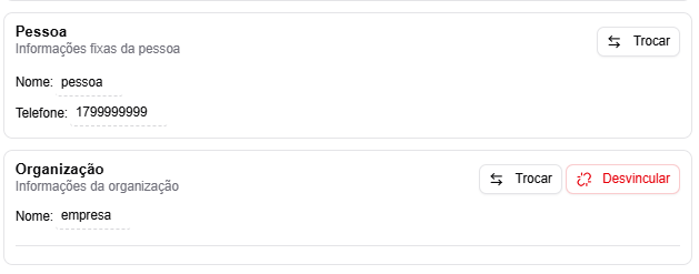 Esse vínculo ajuda a manter o histórico estruturado, facilita buscas e melhora a organização das informações, principalmente em vendas B2B ou quando existem múltiplos contatos na mesma empresa. Caso necessário, é possível alterar a Pessoa ou a Organização vinculada à negociação a qualquer momento.