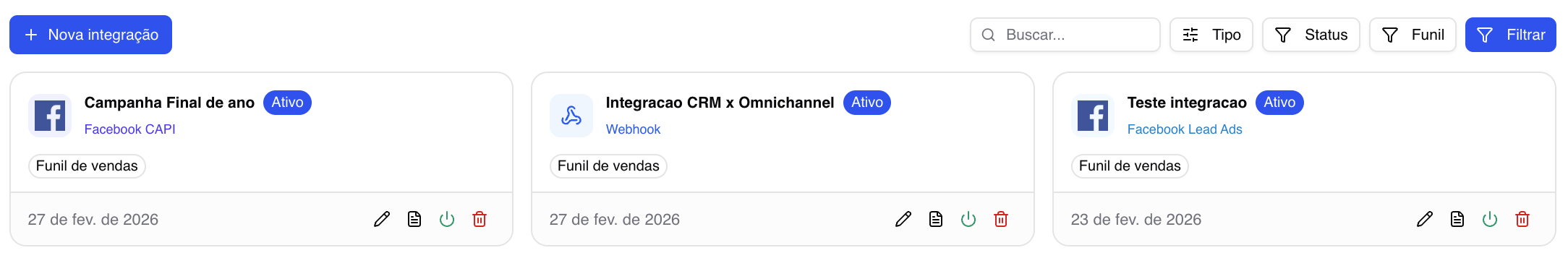 O CRM Integra-se facilmente com inúmeras ferramentas diferentes, sendo elas a própria Meta e outros Omnichannels, permitindo que você conecte a plataforma com diversas outras soluções. Pode se integrar a uma variedade de serviços para facilitar ainda mais a sua rotina.